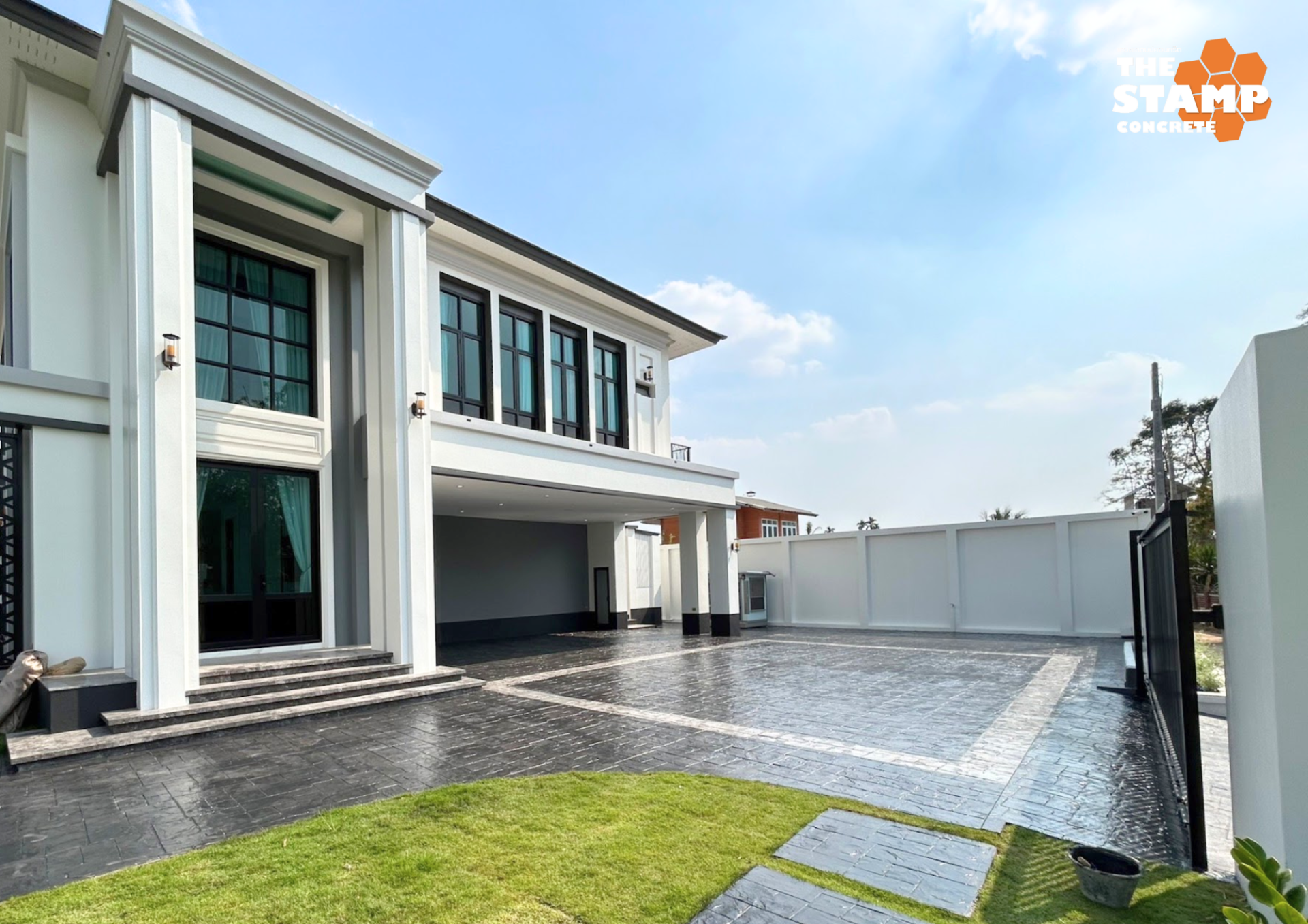 ร่องลึกชัด ลายดูมีมิติ งานออกมาดูเข้ม เท่ เหมาะกับลานจอดรถและทางเข้า